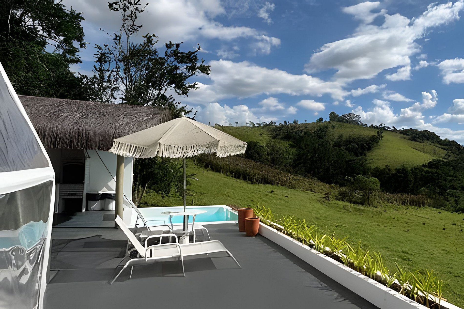 Privacidade e tranquilidade Localizado em meio à natureza, cercado por muito verde e canto dos pássaros, o espaço é totalmente reservado para você e seu amor.